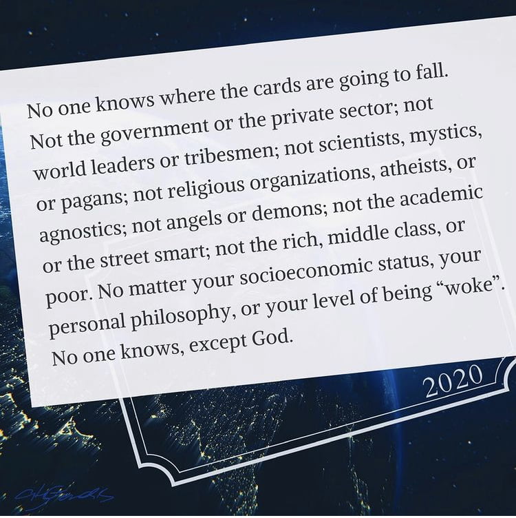 The year 2020 has revealed that we are at the beginning of something different. But do not be anxious or hastened, because we wait on, and depend on the leading of the Holy Spirt to do all things that are done.