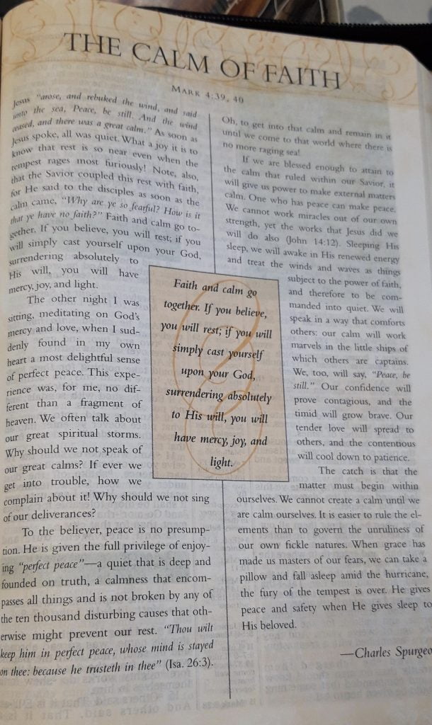 This morning I had my devotional as usual prayed then read the word, came across a writing from Charles Spurgeon saying “Faith and calm go together”. Who wouldn’t want calm specially at this time!